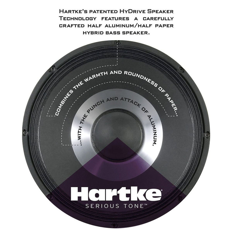 В HD50 (50 ватт, 10-дюймовый драйвер) Hartke использует запатентованную технологию спикера HyDrive, тщательно разработанный бумажно-алюминиевый гибрид конусного басового диффузора. Соединяя в себе тепло и мягкость бумаги с жестким и колким алюминием, технология HyDrive воспроизводит звук, который удовлетворит бас-исполнителя любого жанра и стиля.