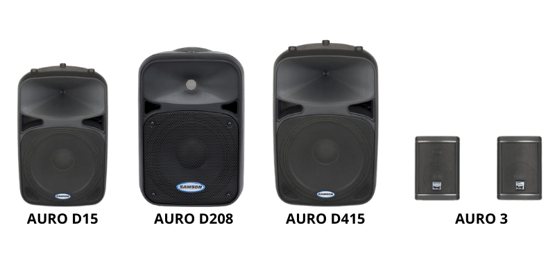 Компоненты системы Samson AURO включают в себя как пассивные, так и активные акустические системы.