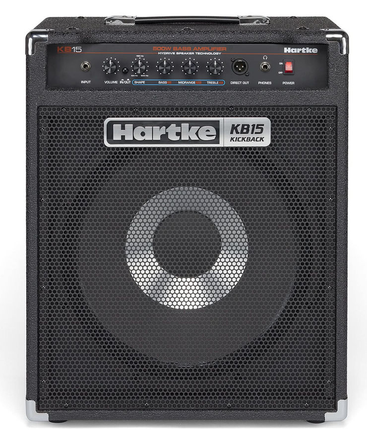 Басовый комбоусилитель Hartke Kickback KB15, 1х15" алюм. драйвер, 120 ватт, вход Activ/passiv, баланснный выход XLR, выход на наушники, 3-полосный зквалайзер, регулировка Shape, 612x502x515 мм, 19,1кг