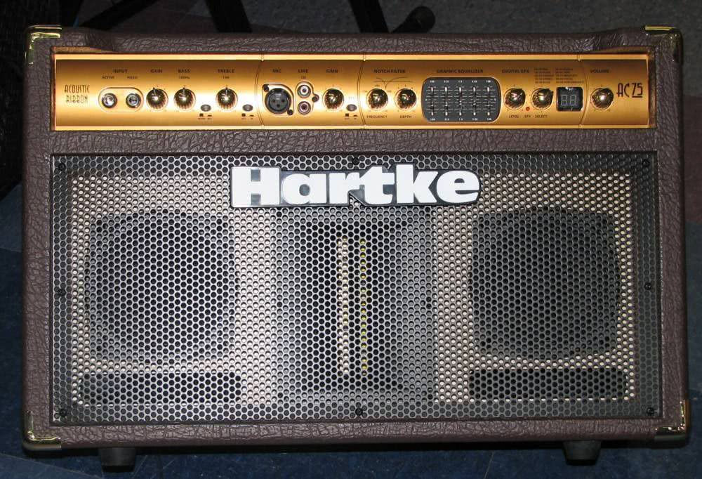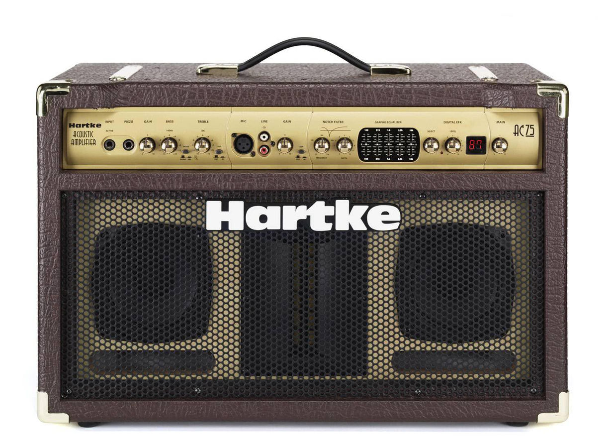 Hartke AC75 оснащенный 2х 5" широкополосными усилителями и 2"-4" твитером, комбоусилитель АС75 обеспечивает естественную передачу звука акустических инструментов без окрашивания или искажения.
