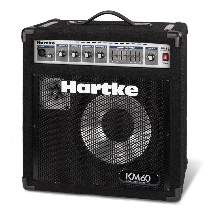 Hartke КМ60 обладает мощностью 60 ватт, низкочастотным динамиком диаметром 10" с алюминиевым диффузором и рупорным высокочастотным керамическим горном, что делает его мощной, профессиональной 2-полосной системой мониторинга полного спектра. У исполнителей с несколькими клавишными инструментами и звуковыми модулями нет необходимости в дополнительном микшере, поскольку есть встроенный. Микшер имеет микрофонный вход первого канала, три дополнительных линейных входа и вход стерео Aux.