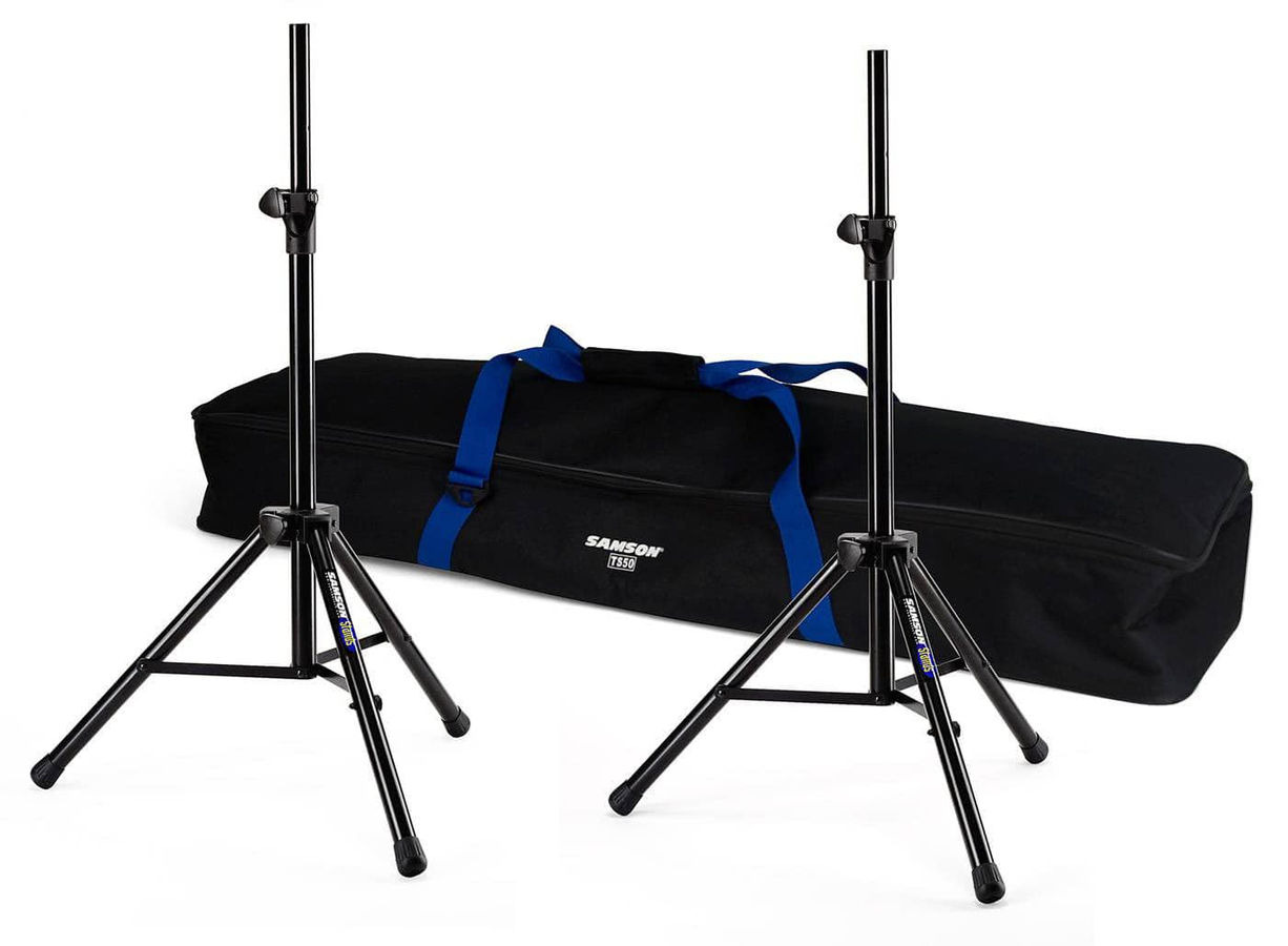 Комплект из двух подставок для акустических систем Samson TS50P с сумкой для транспортировки позволят установить Ваши громкоговорители на необходимую высоту, что позволит зрителям наслаждаться музыкой. Стойки идеальны для использования с мощными акустическими системами. Легкий вес и малые размеры в сложенном состоянии треноги делают эти стойки удобными для транспортировки. Стойки изготавливаются из стальных труб с окраской гладким черным покрытием.