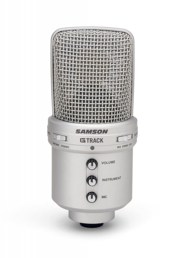 Samson G-Track - первый в мире конденсаторный USB микрофон с встроенным аудио-интерфейсом, который позволяет одновременно записывать вокал и гитару, бас или клавишные, также обеспечивая переключение между режимами стерео, моно и компьютерного мониторинга через плату вывода наушников. Кроме того, Samson G-Track имеет большую 19 мм мембрану с кардиоидной диаграммой направленности, что обеспечивает гладкую, ровную частотную характеристику.
