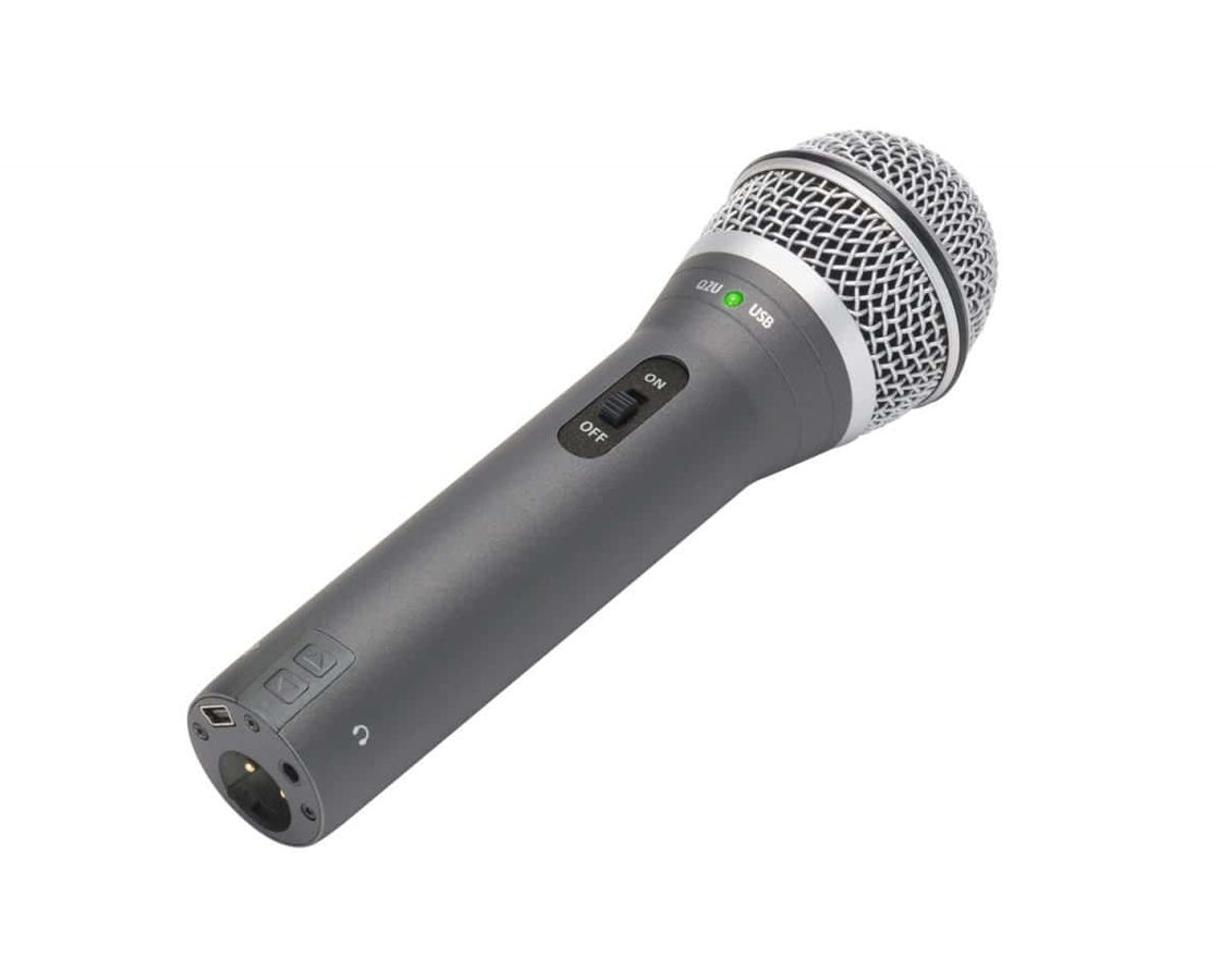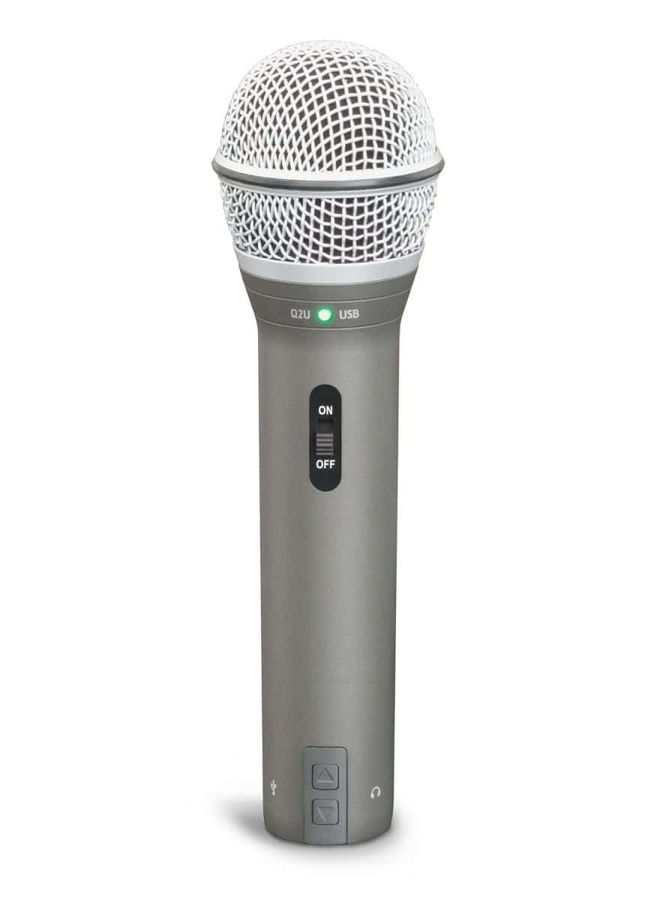 Q2U является динамическим ручным микрофоном, в котором есть выход XLR и USB I / O, так что его можно подключить непосредственно к консоли любого живого звука или любого компьютера с USB входом. Клавиша переключения позволяет управлять аудио на входе XLR, что позволяет исполнять в живую и одновременно записывать на компьютер.