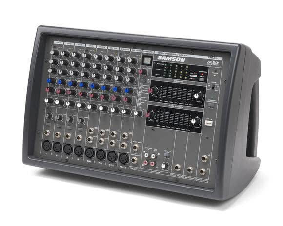 - Каждый канал имеет микрофонный предусилитель с фантомным питанием, 3-полосный эквалайзер и DSP