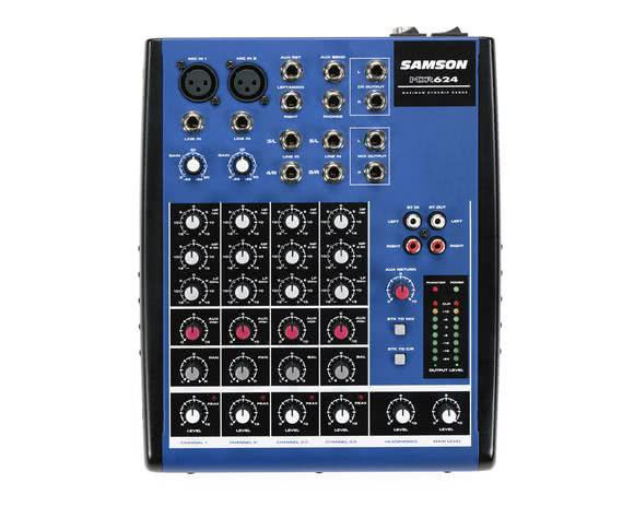 Samson MDR624 - это шести-канальный микшер с двумя малошумящими микрофонными предусилителями. В дополнение к двум моно микрофонным / линейным входам, имеются два канала с левым и правым входами для обработки стерео сигналов.