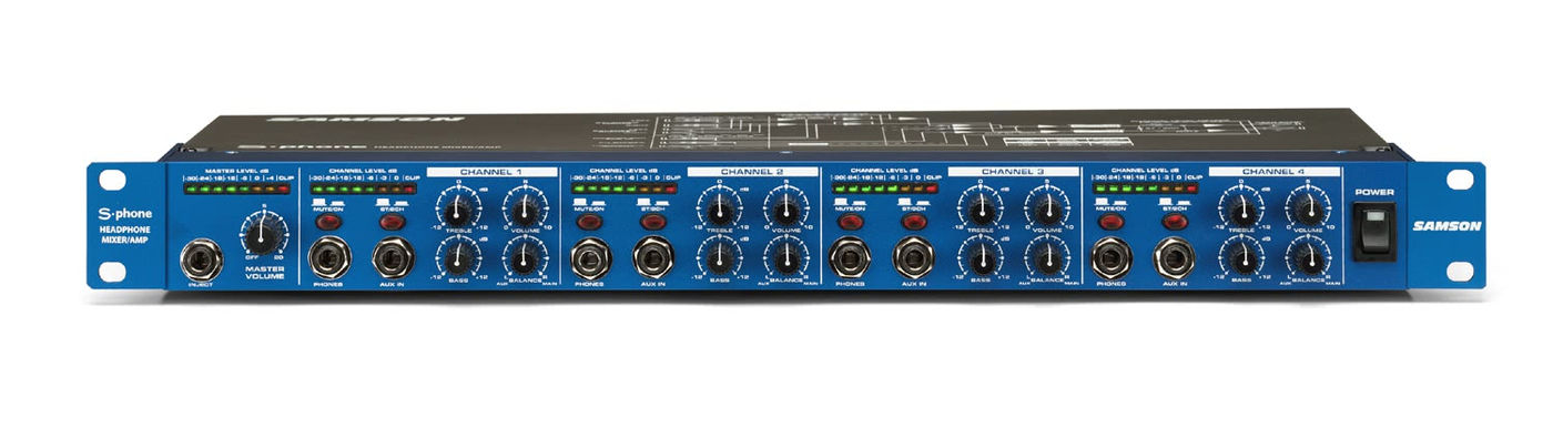Samson S phone – универсальный рэковый 4-х канальный усилитель для наушников, оснащенный продвинутыми функциями для мониторинга и прослушивания. Вход Master Input оснащен регулировкой уровня и светодиодной индикацией для визуального мониторинга.