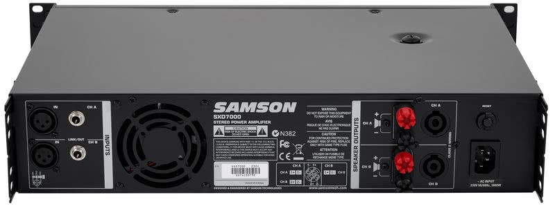 Как и все усилители мощности этой серии, Samson SXD7000 поддерживает основные факторы надежности и эффективности. С защитой многоступенчатой питания, от перегрева, перегрузки по току, короткого замыкания, низкого выходного сопротивления и напряжения постоянного тока обеспечивает высокую надежность в самых сложных ситуациях при долговременной работе. Кроме того, конструкция шасси и корпуса из стали и удобные ручки для переноски делает его идеальным для турового использования.