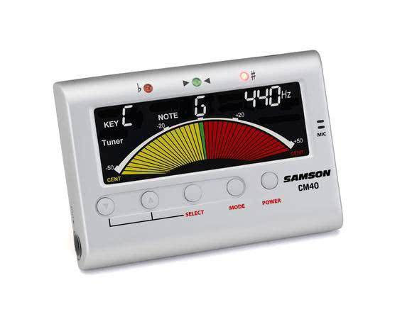 Samson CM40 сочетает в себе возможность занятий с метрономом и настройки тюнером. Его компактный, простой в использовании дизайн делает настройку гитары, бас гитары, струнных, деревянных духовых инструментов проще, чем когда-либо ранее.