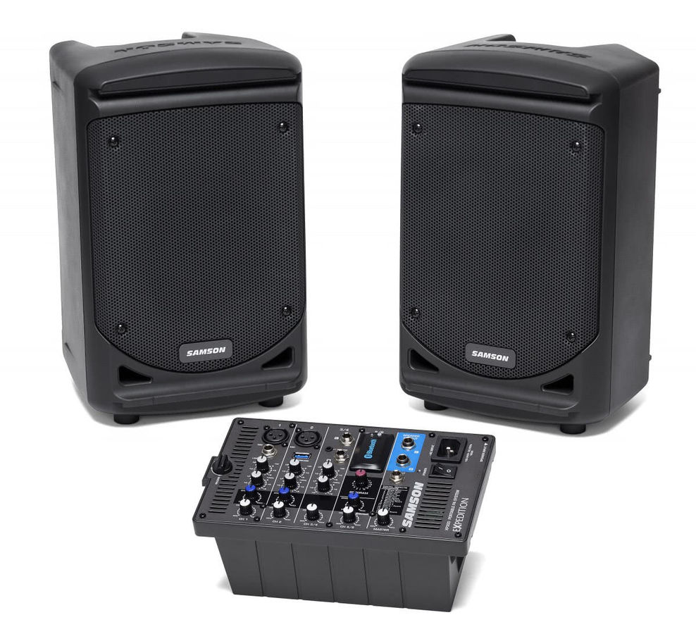 Samson& Expedition XP300 это полнофункциональная звуковая система, обладающая отличным качеством звучания, высокой мобильностью и небольшим весом. Суммарная мощность комплекта — 300 Вт, которую выдают 6-канальный активный микшерный пульт и две широкополоные акустические системы на базе 6" НЧ-излучаталей. Высокая мобильность XP300 также обеспечивается специальными элементами, которые позволяют соединить все компоненты в единый блок, который весит чуть больше 10 кг.