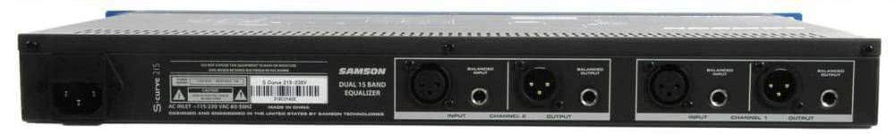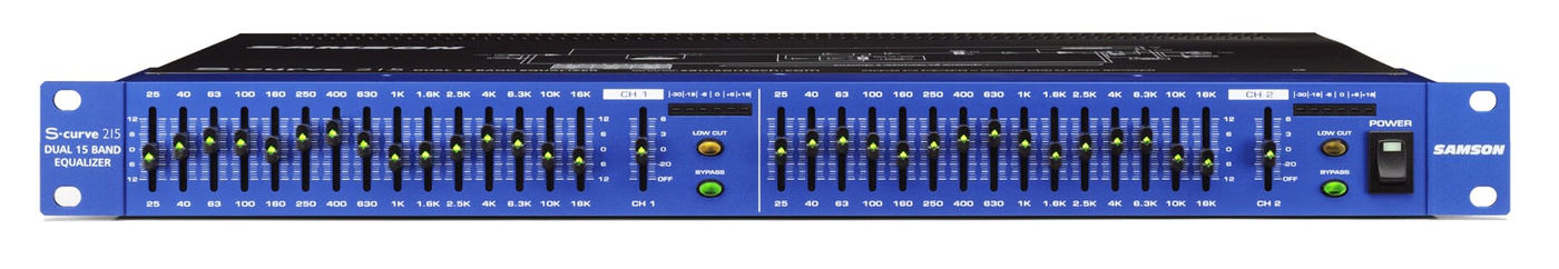 - Эквалайзер Samson S Curve 215 имеет два канала 15 полос эквализации, частоты располагаются через 2/3 октавы в диапазоне 25 гц -16 кгц.