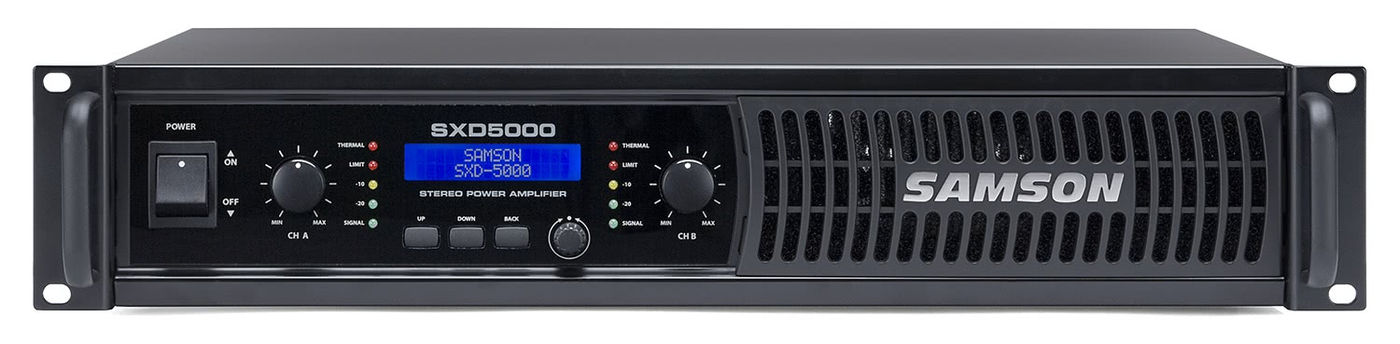 Встроенный цифровой процессор DSP усилителя Samson контролируется с помощью ЖК-дисплея с подсветкой, предназначенного для использования в условиях низкой освещенности, в том числе затемненых сцен. Усилитель мощности имеет фильтры высоких и низких частот, 3-полосный эквалайзер, выходной лимитер и установку времени задержки для выравнивания громкоговорителей. Для быстрой настройки, SXD5000 имеет четыре предустановки, которые призваны обеспечить оптимальные настройки для различных стандартных конфигураций акустических систем. Кроме того, усилитель мощности предлагает установку защитного пароля для защиты установленных параметров.
